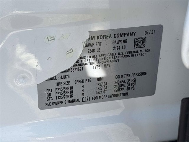 - Tires, P215/55R18 all-season, blackwall